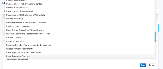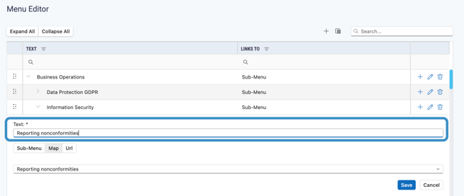 - If you are changing the menu type to a Map select a process map from the map dropdown that appears.